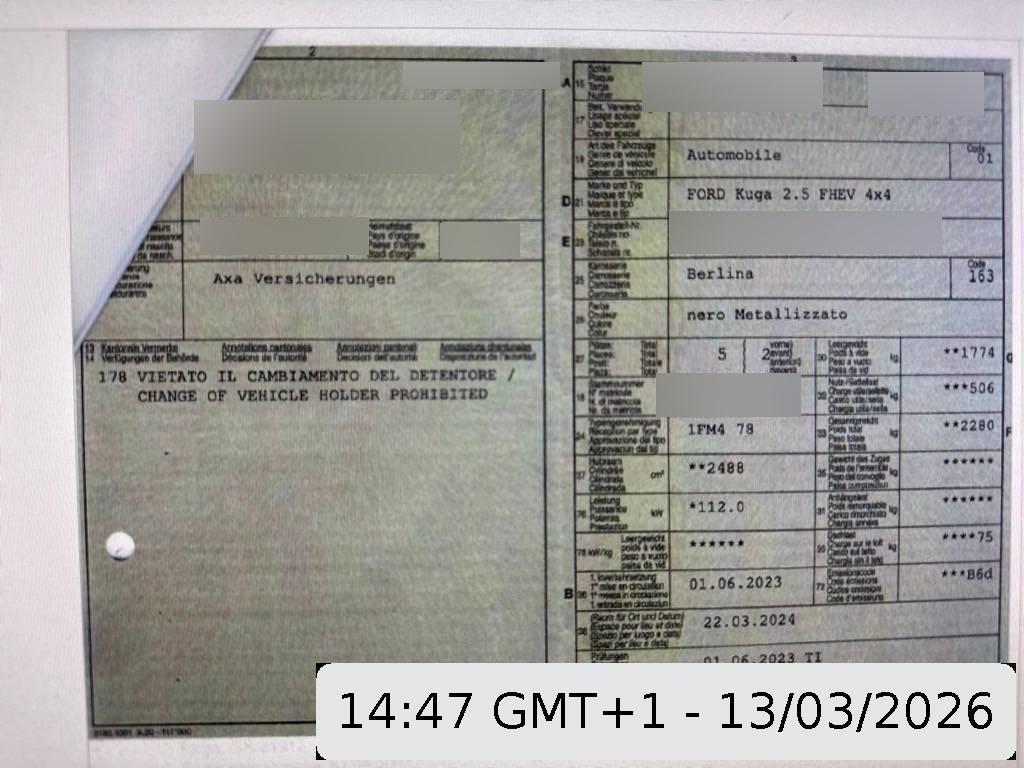 Reparaturkosten ca. CHF 27’252.- Unfallfahrzeug ja MFK 06/2023 Service-Heft Vorhanden Fahrzeugausweis Vorhanden Anzahl Schlüssel 2 Typ-Nr. 1FM478 Stamm-Nr. – Fahrbereit rollbar