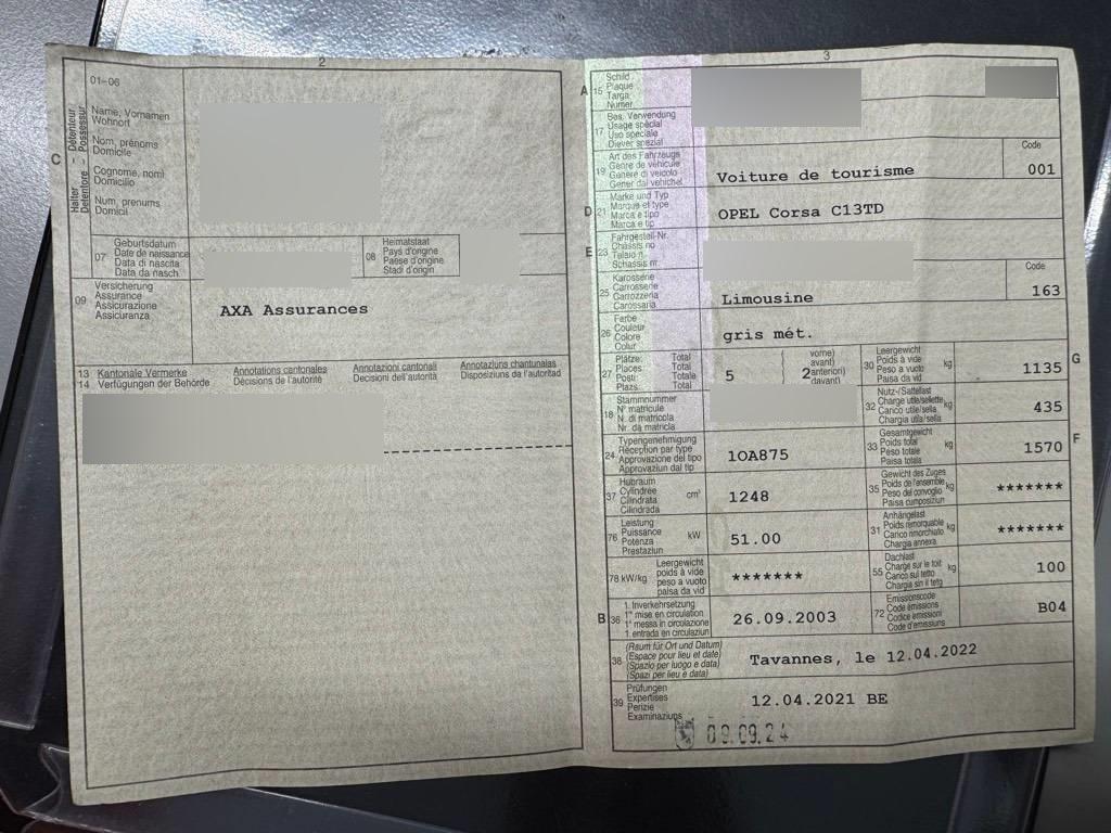 Reparaturkosten ca. CHF 7’842.- Unfallfahrzeug ja MFK 09/2024 EG-Bescheinigung COC Fehlt Service-Heft Fehlt Fahrzeugausweis Vorhanden Anzahl Schlüssel 1 Typ-Nr. 1OA875 Stamm-Nr. – Fahrbereit rollbar