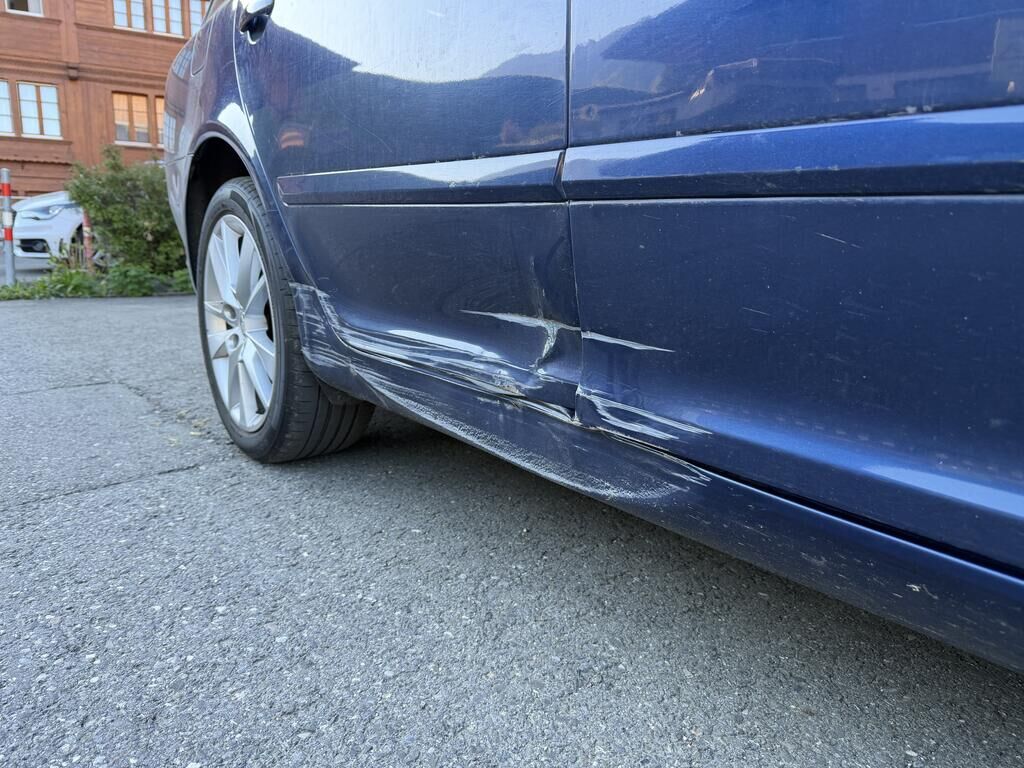 | Vorschäden: – Stossfänger und Kotflügel vorne links aufgeschürft – Stossfänger vorne rechts verkratzt – Leichte Kratzer und Dellen linke Seite – Lackschäden und Dellen Seitenwand hinten links – Deformation Stossfänger hinten – Lackablösungen Stossfänger hinten rechts Änderungen im Bereich der Felgen und Reifen nicht ausgeschlossen |