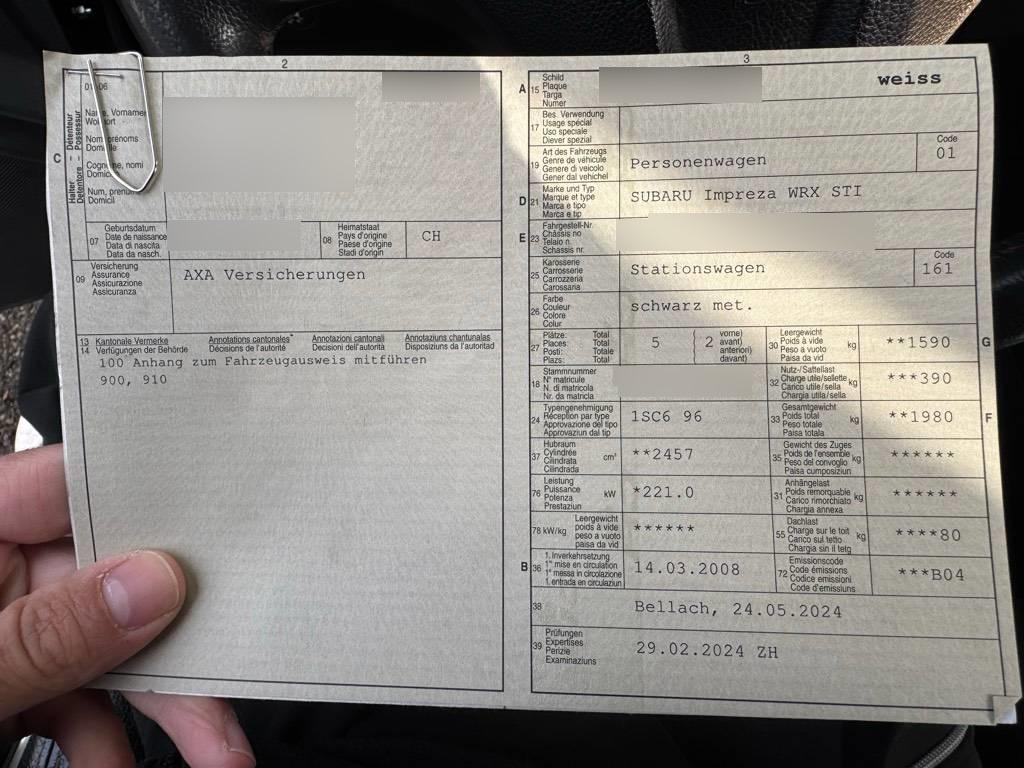 Reparaturkosten ca. CHF 19’090.- Unfallfahrzeug ja MFK 02/2024 EG-Bescheinigung COC Fehlt Service-Heft Vorhanden Fahrzeugausweis Vorhanden Anzahl Schlüssel 1 Typ-Nr. 1SC696 Stamm-Nr. – Fahrbereit rollbar