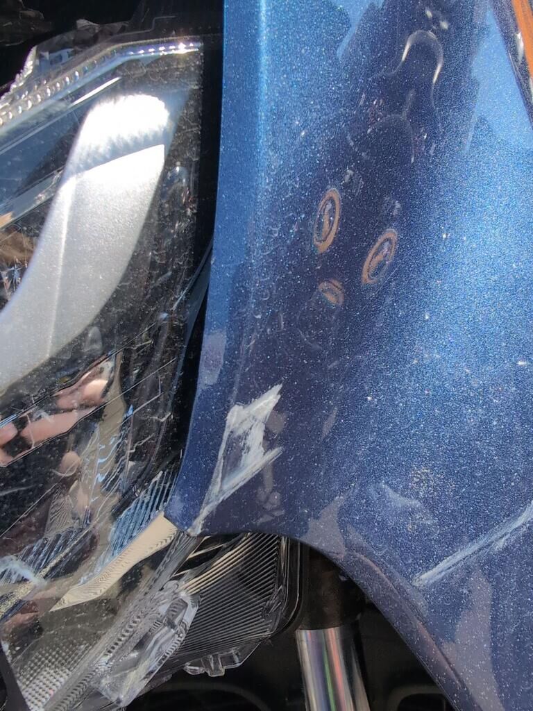| Opis uszkodzen: | Aufprall in Fahrzeugfront mit Beschädigung von Verkleidungen, Scheinwerfer, Schutzblech, Verkabelung, Gabel sowie diversen Anbauteilen. |
